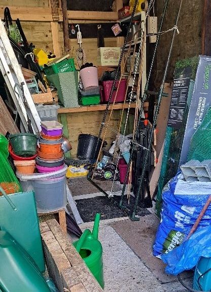 A glimpse into our putting shed, not quite sorted or decluttered. I was looking at a new wheel barrow recently but they cost around €150! I thing the old rusty one will get of a clean up instead.