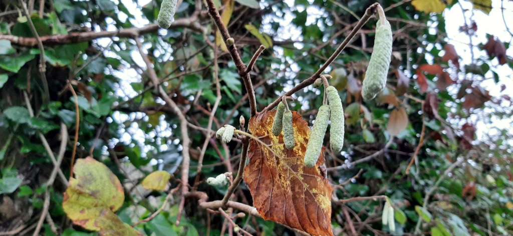 We saw catkins growing on the hazel tree, some different species of ferns, many of them, fungi and one lone snowberry.